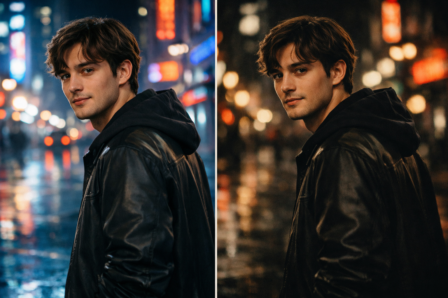 This type of prompt tends to perform well for social clips because it combines a recognizable genre with vivid lighting cues.