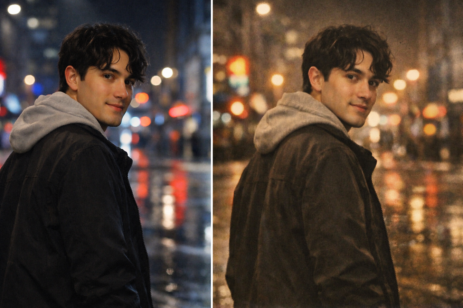 This kind of prompt is effective when you want a nostalgic mood without changing the subject too dramatically.