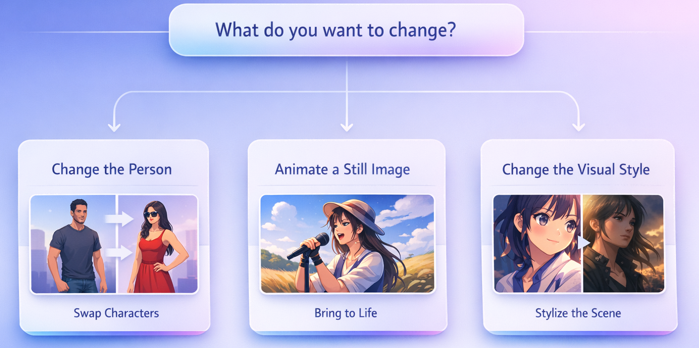 ## **4**.Character Swap vs Motion Control vs Style Transfer: The Fastest Way to Choose